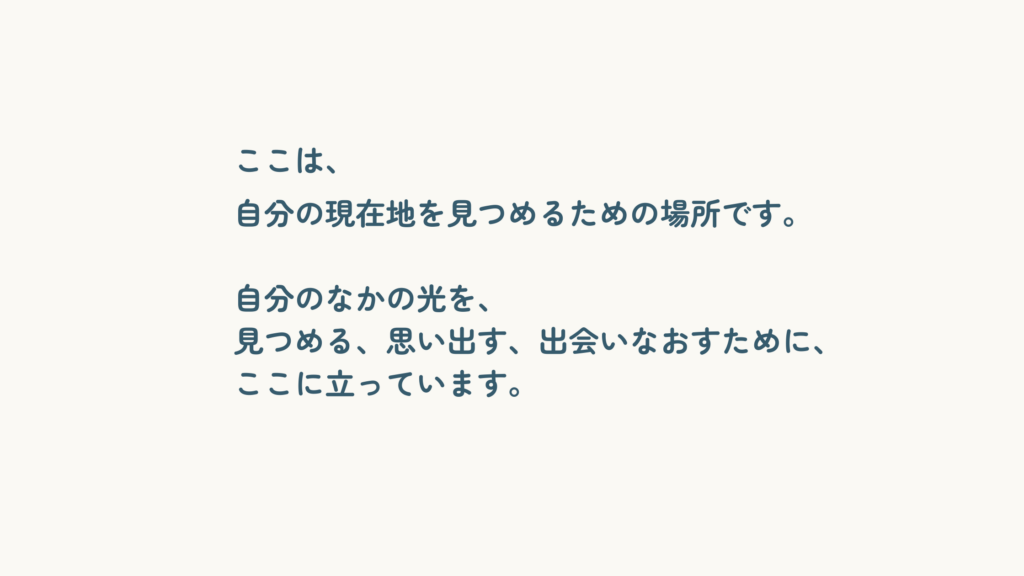この場所で、自分を見つめ、重ね、てらし合わせることで、