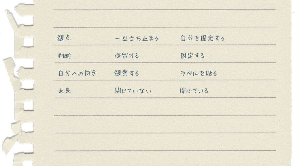 「決めつけずに、一旦立ち止まる」ことなのかもしれません。
